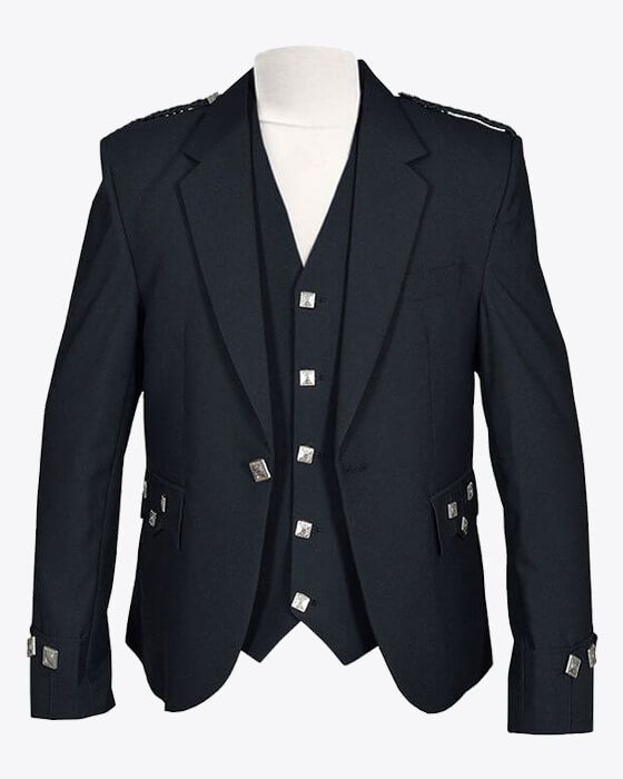 The Argyle jacket and waistcoat are a traditional formal outfit for semi-formal occasions during the day but also suitable for evening events. Typically, one wears it with a kilt. Argyle is less formal than Prince Charlie's kilt jacket.