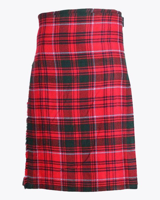 Each tartan kilt has 3 buckles and straps for size adjustment: genuine leather waist straps (4" long by 1 1/4" wide). Kilt straps on this kilt are set with an allowance of 2" looser. This kilt's front edge has fringe and is pleated to the sett but can be pleated to stripe by request. There are two belt loops at the back. The kilt has a 100% cotton lining for a soft feel when being worn. The standard kilt comes with a 5-yard, but you can convert it into an 8-yard by selecting the "8-yard kilt" option.